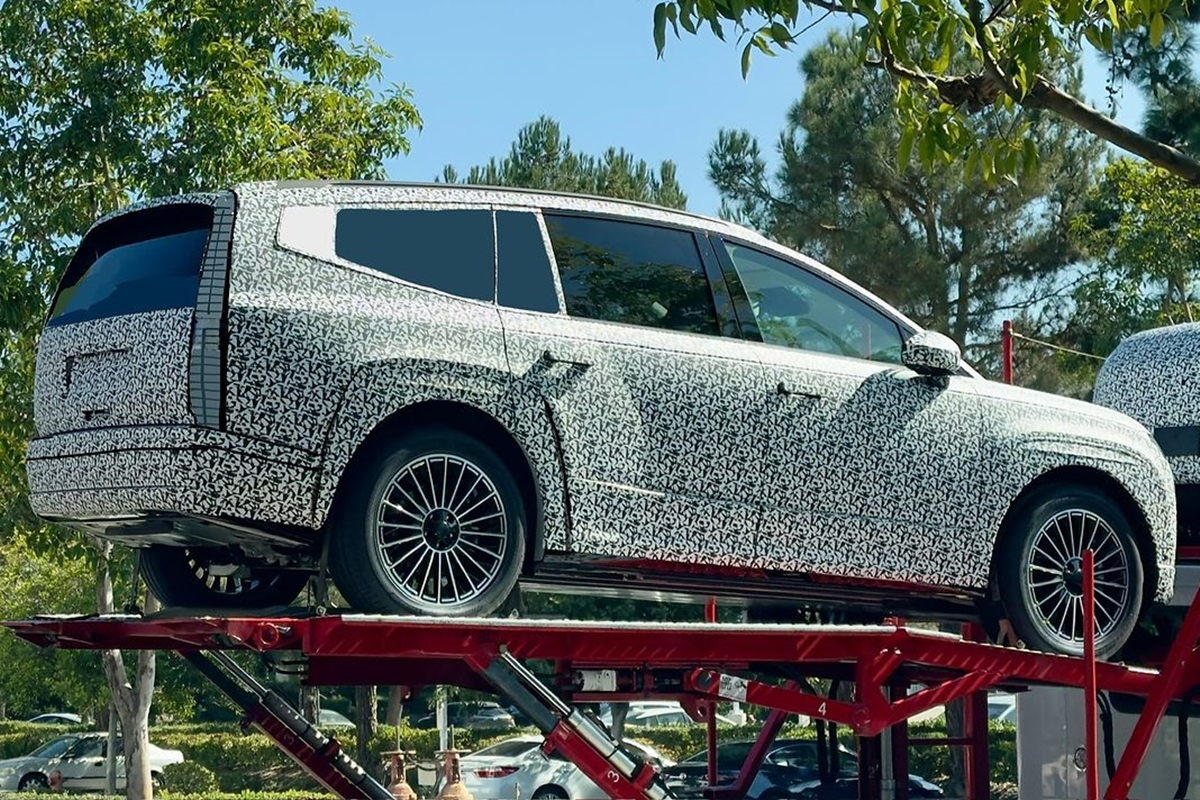 한편, 이번 신차는 전기차 플랫폼 특유의 우수한 공간 활용도를 바탕으로 EV9 못지않은 거주성을 제공할 전망이다. A 필러가 상당히 누운 각도임에도 헤드룸 여유가 남으며, 3열 좌석은 팰리세이드와 비슷한 수준의 공간이 기대된다. 앞서 싼타페에 적용된 양방향 개폐형 센터 콘솔, 2열 독립 시트 또한 적용된다.