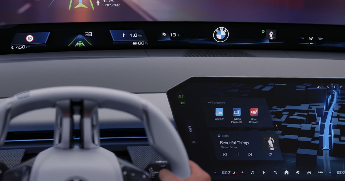 The central display operates in the same way as current BMW infotainment screens, except without knobs and buttons to make selections.