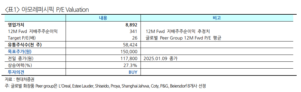 현대차증권 “아모레퍼시픽, 2025년 점진적인 개선 기대”