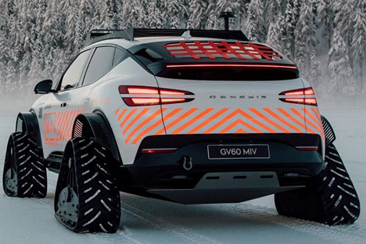 제네시스가 극한 환경에서도 운행이 가능한 다목적 험로주행 콘셉트 모델을 공개했다. 지난 1월 20일(월)부터 24일(금)까지 다보스포럼이 열린 스위스 다보스의 아메론 호텔에서 ‘GV60 다목적 험로주행 콘셉트(GV60 Mountain Intervention Vehicle Concept)’를 전시했다.