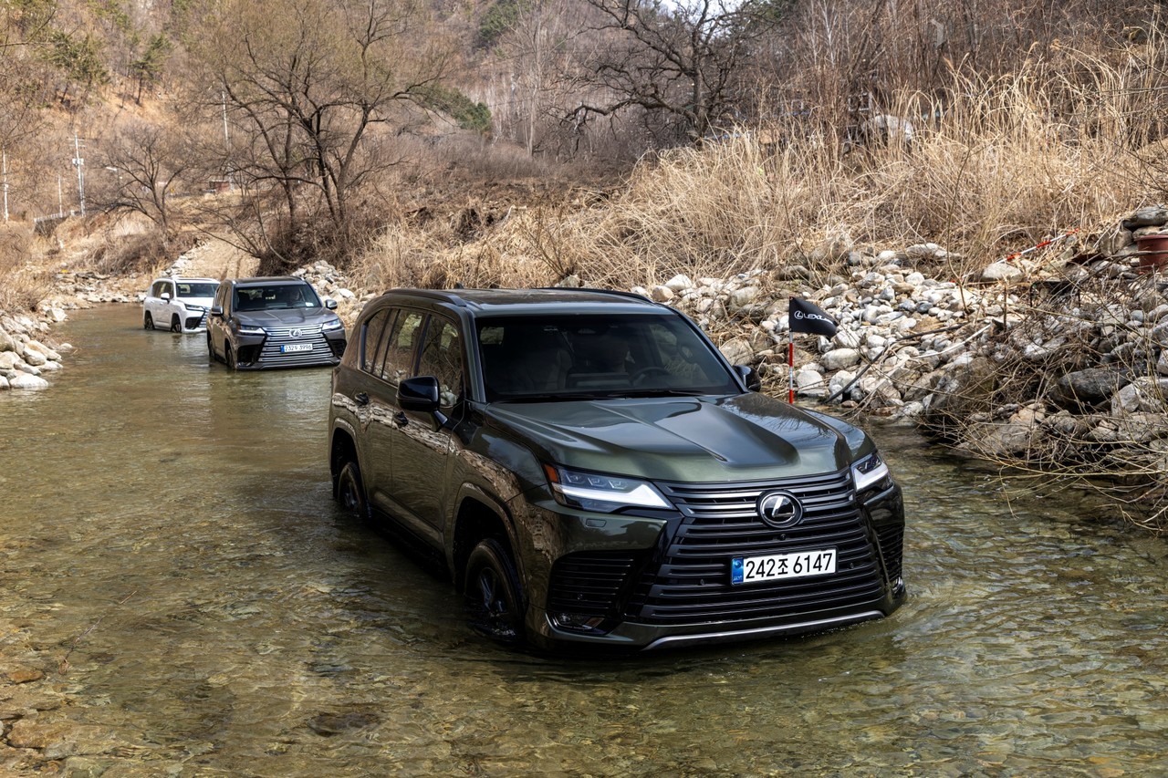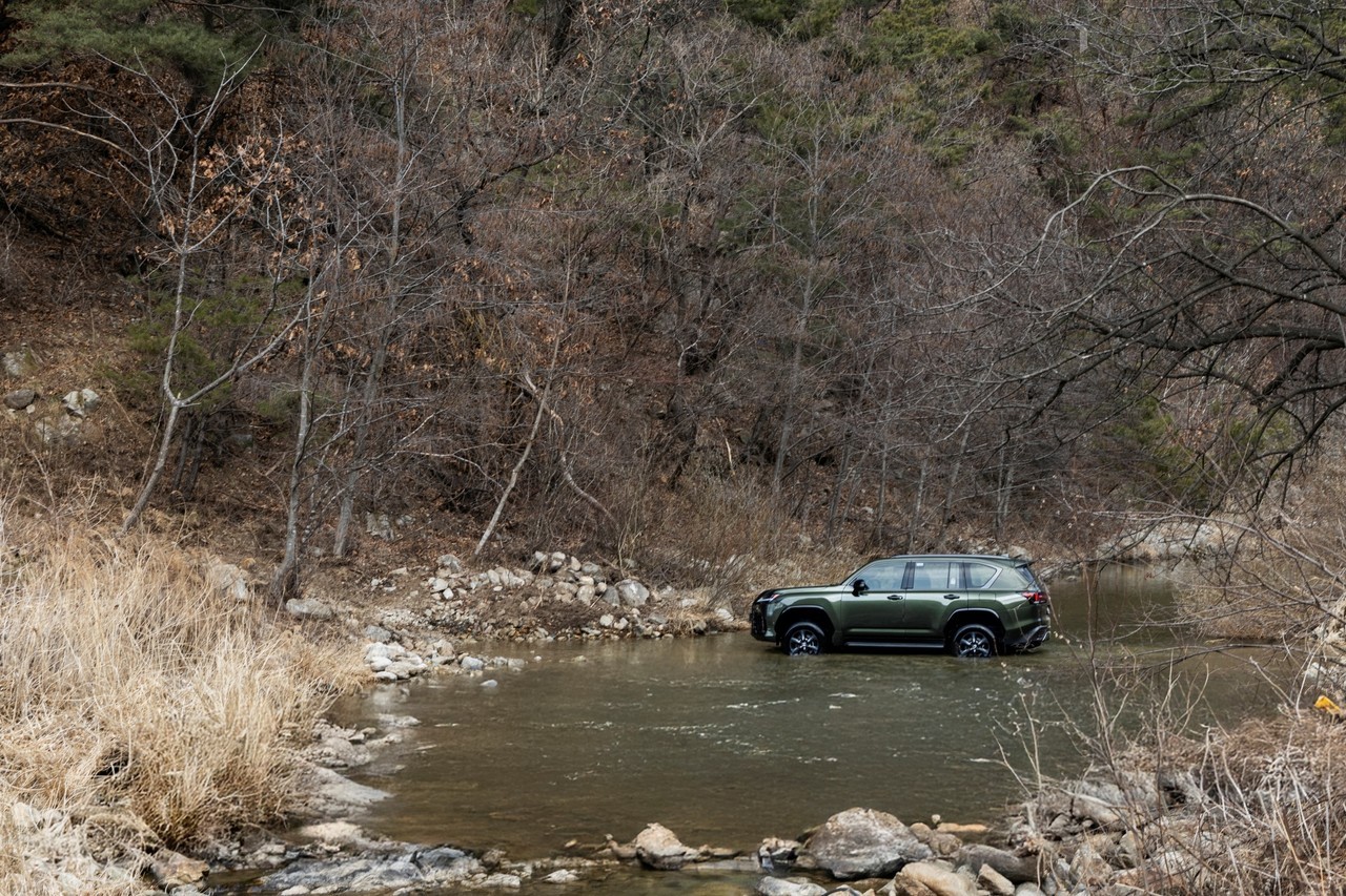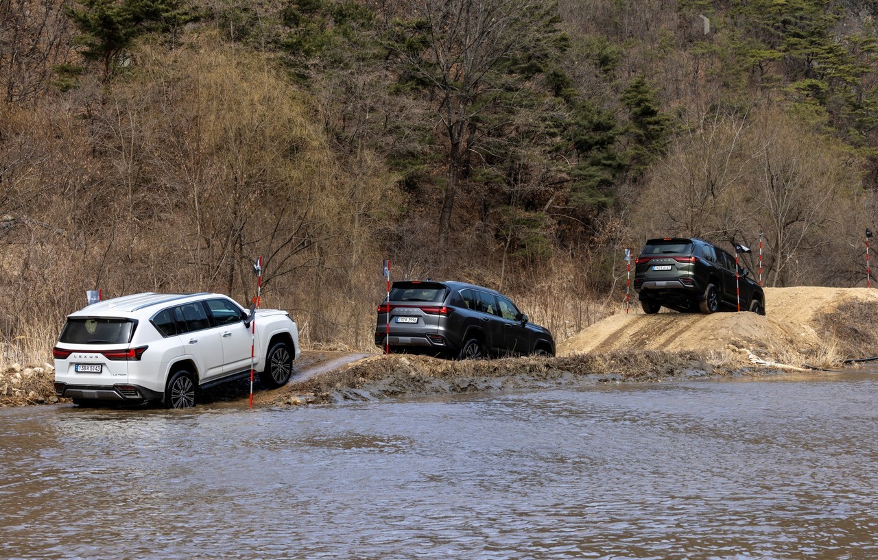 바로 이어진 코스는 도강 코스, 전날 쏟아진 눈발에 물은 500mm까지 불어나 있었지만 LX는 유유자적 물을 헤치고 지나갔다. 바퀴 중간을 넘길 정도의 깊이라 도어를 열면 실내로 물이 들이칠 수준이었지만 LX의 실내는 그저 평온할 뿐. LX의 스펙상 도강 높이 역시 700mm에 달하기에 주파하는 내내 심적인 부담도 없이 지날 수 있었다.
