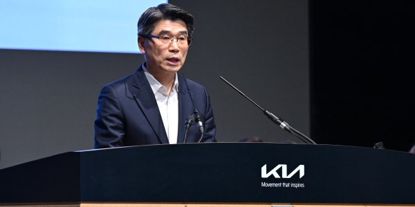 송호성 기아 대표이사 사장이 지난 3월14일 서울 서초구 양재동 엘타워에서 열린 정기 주주총회에서 개회선언을 하고 있다. 「기아」