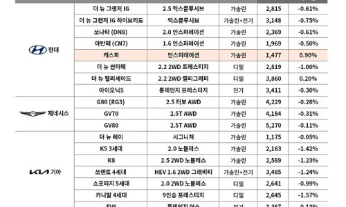 엔카닷컴이 2025년 4월 중고차 시세를 공개했다. 이번 시세는 2022년식 인기 차종을 기준으로 분석됐으며, ...