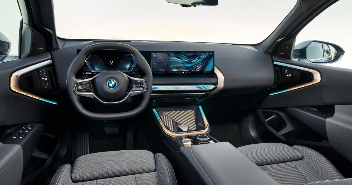 Inside, the fourth-generation X3 features a curved display housing a 12.3-inch digital instrument cluster and a 14.9-inch touchscreen infotainment system running BMW’s Android-based Operating System 9.