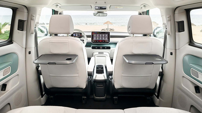 ID.Buzz는 2열 좌석을 벤치형이나 독립 캡틴 시트로 선택할 수 있으나, 어떤 경우에도 기본적인 컵홀더가 제공되지 않는다. 내부 도어 포켓이나 이식형 콘솔 외에는 음료를 놓을 만한 공간이 마땅치 않아, 리뷰어들은 “대형 음료를 손에 쥐고 있어야 하는 상황”이라고 표현했다.