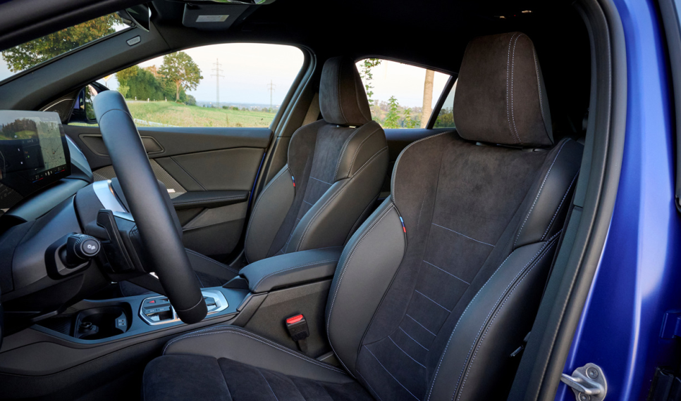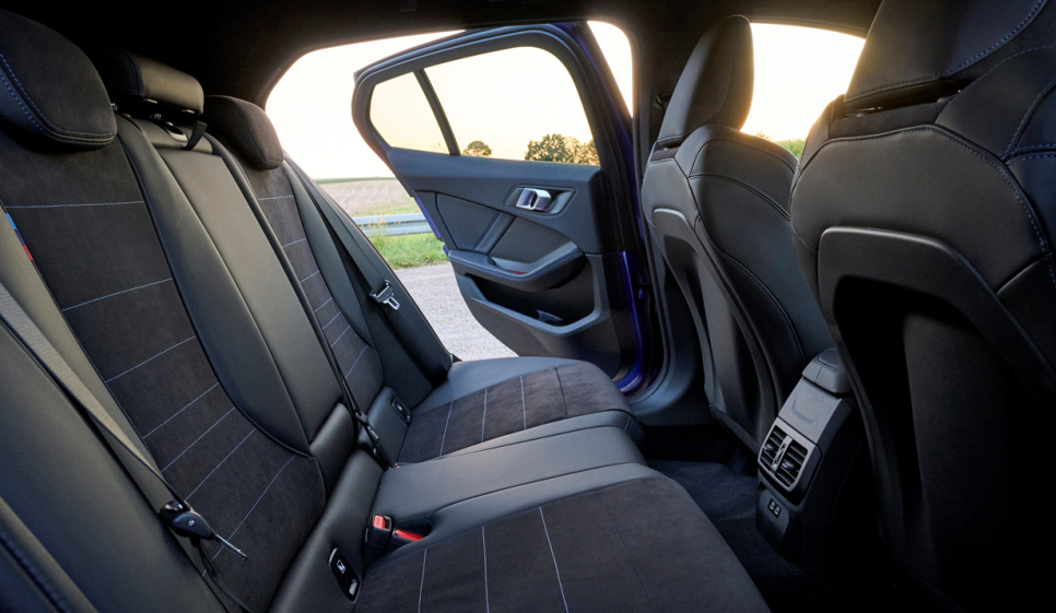 2025 BMW 1시리즈는 사실 전장은 많이 작지만 휠베이스가 길어 2열 공간은 나쁘지 않습니다 1열 시트 쪽에는 무릎 공간을 조금 더 내면서 레그룸을 확보했죠 아쉽게도 2열 리클라이닝은 없지만 필요에 따라 폴딩 시트를 통해 적재 공간을 확보할 수 있습니다 그리고 M134 xDrive 등급에서는 블루 스티치와 블랙 M 알칸타라/베간자 소재를 적용해 고급스러운 감성까지 느껴보실 수 있는 준중형 해치백 차량이었습니다