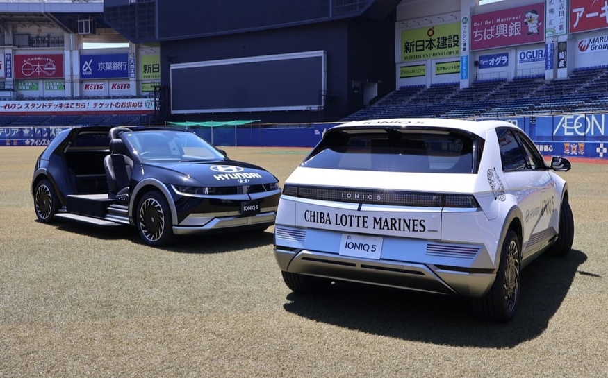 5일 업계에 따르면 현대차 일본법인인 현대모빌리티재팬(HMJ)은 일본 프로야구 구단 지바 롯데 마린스와 파트너십을 체결하고 전기차 '아이오닉 5' 2대를 제공하기로 했다. 해당 차량은 앞으로 마운드로 향하는 투수 교체용 차량인 '불펜카(릴리프카)'로 활용된다. 파트너십은 오는 2030년까지다.