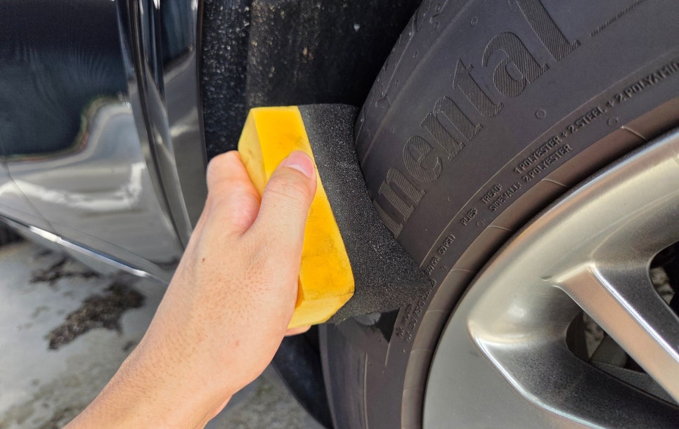타이어 광택제 바르는 순서는 간단합니다. 먼저 고압수로 타이어를 비롯해 외관에 묻은 이물질들을 깔끔하게 제거하고 물기를 닦아 주겠죠, 그런 다음 외관 광택이 들어가기 전 타이어 광택제부터 발라 주시면 됩니다 20분 정도 건조해 줘야 되기 때문이죠. 타이어에 바르기 전에는 꼭 물기가 없는 상태에서 시공해 주셔야 내구성이 오래갑니다