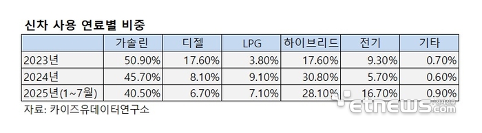 디젤 모델을 비롯한 내연기관차 수요 감소 속도는 해마다 빨라지고 있다. 카이즈유데이터연구소에 따르면, 2023년 전체 신차 판매량의 17.6%를 차지했던 디젤 모델 비중은 올해(1~7월 기준) 6.7%까지 하락했다. 가솔린 모델 비중 역시 2023년 50.9%에서 올해 40.5%까지 줄었다.