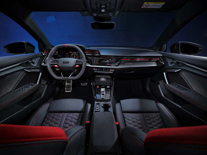 신형 RS 3에는 12.3인치 버츄얼 콕핏 플러스, MMI 내비게이션 플러스(터치스크린), 아우디 스마트폰 인터페이스가 기본 탑재된다. 또한, SONOS 3D 프리미엄 사운드 시스템(16채널 15스피커, 680와트 출력)으로 풍부한 음향 경험을 제공한다. 이 외에도 3존 자동 에어컨, 전동·열선·눈부심 방지 사이드 미러, 아우디 드라이브 셀렉트 등 첨단 사양이 기본 적용돼 일상 속에서도 안전성과 편의성을 보장한다.