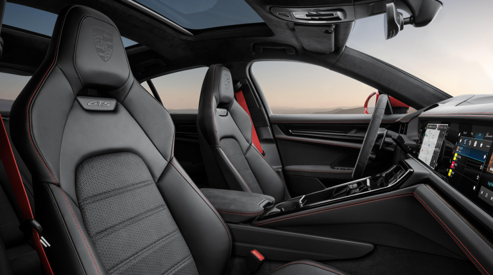 시트도 헤드레스트 일체형인 어댑티브 스포츠 시트가 들어가는데요 가운데 GTS 로고가 새겨져있고 시트 쿠션을 높게 올라온 사이드 볼스터 덕분에 측면 지지력이 강화되었고 전동식 18way 시트는 사용자에 맞춰 최적의 시트 포지션을 설정할 수 있죠. 포르쉐 파나메라는 선택 옵션을 통해 시트 4+1 선택할 수도 있고 워낙 거주성이 뛰어나 스포츠 패밀리카로 만족스러울 수 있습니다. 워낙 선택 옵션에 따라 천차만별 분위기가 다르기 때문에 구매하시기 전에 패키지 사양 잘 알아보시면 되겠습니다.