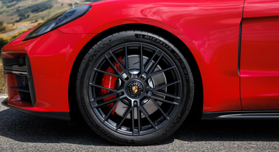 전장 5,052mm, 전폭 1,937mm, 전고 1,415mm, 축거 2,950mm 대형 세단 차량인데요 긴 전장 길이와 휠베이스로 거주성이 매우 좋죠 크기에 비해 유려한 루프 라인은 파나메라 특유의 완벽한 측면 실루엣을 보여줍니다. 휠은 20-21인치 및 레드 캘리퍼가 들어가는데 휠 디자인 옵션과 휠 컬러 옵션은 다양하게 구성되어 있기 때문에 사용자 니즈에 맞게 선택하시면 되겠습니다.
