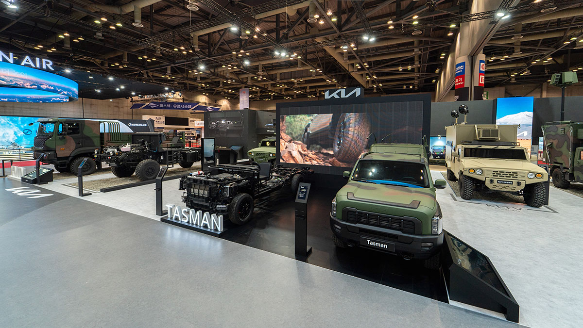 국내 최대 규모의 방위산업 전시회인 ‘서울 ADEX 2025(Seoul International Aerospace & Defense Exhibition 2025)’에서 기아가 자사의 군용차 라인업을 대거 선보였다. 픽업 트럭 타스만을 기반으로 개발된 군용 지휘차 실물을 비롯해 차세대 중형표준차와 소형전술차, 향후 투입될 대형표준차 모형까지 공개하며 기아의 방산 기술력을 내세웠다.