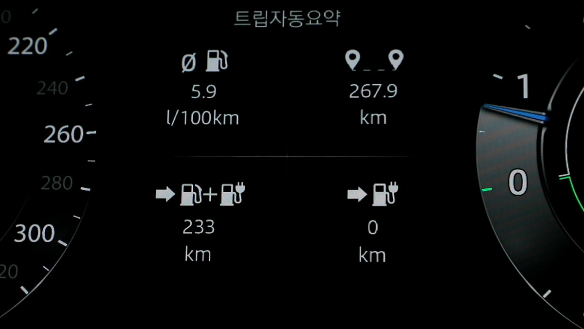고양시에서 출발하기 전 100% 충전했던 배터리는 부산의 마지막 요금소인 대동 요금소를 지날 때 0%에 도달했다. 물론 고양시에서 충주휴게소까지 세이브 모드를 활용했기 때문에 출발할 때부터 하이브리드 모드로 주행했다면 이보다 더 빨리 소진됐을 것이다. 하지만 SOC가 0%가 됐다고 해서 모든 전기 모터가 아예 작동을 중지한 것은 아니었다. 소통량이 극도로 많은 정체구간과 주차 상황에서는 전기 모터로만 주행이 가능했다.