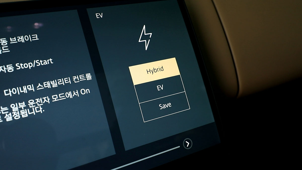 파워트레인 활용에 따른 드라이브 모드는 세 가지로 나뉘어져 있다. 세이브 모드는 배터리 사용을 최소화하며 내연기관 중심으로 구동되는 모드다. 배터리를 100% 충전했을 때 기준으로 배터리 잔량이 80% 미만으로 떨어지지 않게끔 설정됐으며, SOC가 80%에 다다르면 거의 모든 순간에 내연기관만 활용하는 모습을 볼 수 있었다. 공차중량이 3톤이 넘어가는 무거운 차지만 6기통 3.0ℓ 가솔린 엔진도 결코 힘이 부족하지는 않았다.