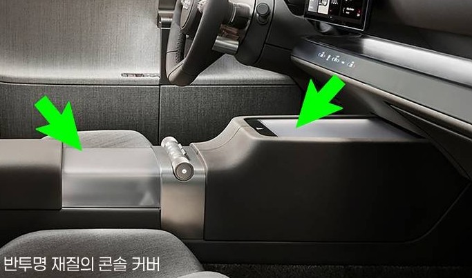 C-콘셉트는 스티어링 휠 뿐 아니라 주변의 팔걸이와 콘솔 등에도 금속 재질의 물리 버튼이 다수 설치돼 있습니다. 또 하나 눈에 띄는 건 콘솔의 커버를 반투명 재질로 만들었다는 것입니다. 실제로 콘솔박스에는 도난 방지, 혹은 실내 온도, 직사 일광 등으로부터 물품 보호 등을 위해 커버가 설치돼 있지만, 정작 커버를 닫으면 물건이 보이지 않으므로 깜빡 잊고 물건을 챙기지 않고 차에 두고 내리는 경우가 종종 생깁니다.