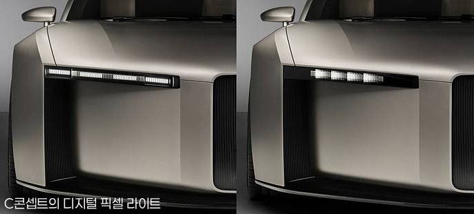 그런데 오늘의 수직 직사각형 라디에이터 그릴과 수평 슬림 LED 헤드 램프, 그리고 앞 범퍼 양 끝에 자리잡은 수직 에어 덕트 구성의 ‘C-concept’는 매우 강렬한 인상을 보여줍니다.