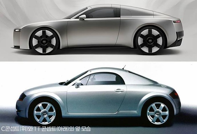 최근의 아우디의 차량 디자인이 30년 전의 TT, 또는 20년 전의 모노-프레임에 의한 혁신 이후의 이루어진 변화가 쌓은 결과로 인해 조형적 순수성 대신에 디테일과 기교로 가득한 복잡하고 더 강렬한 이미지를 내기 위해 과장된 디자인 경향에서 벗어나, 미니멀한 특성의 C-콘셉트를 계기로 다시 새로운 순수한 조형으로의 회귀하는 계기가 되기를 바래 봅니다.