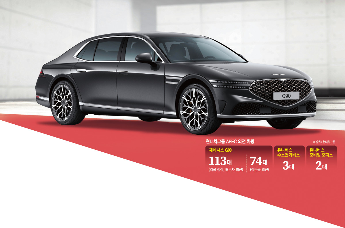 현대자동차그룹이 20년 만에 국내에서 개최된 아시아태평양경제협력체(APEC) 정상회의에 공식 의전 차량을 지원하면서 국내 모빌리티 산업의 위상을 한층 끌어올렸다. 제네시스의 고급 세단 G90·G80을 비롯해 수소전기버스와 모바일 오피스 버스까지 총 192대의 차량들이 글로벌 정상급 인사들의 이동을 책임졌다. 자국 브랜드로 의전 차를 자체 운용할 수 있는 국가가 적은 만큼 현대차그룹의 경쟁력이 높아졌다는 분석이다.