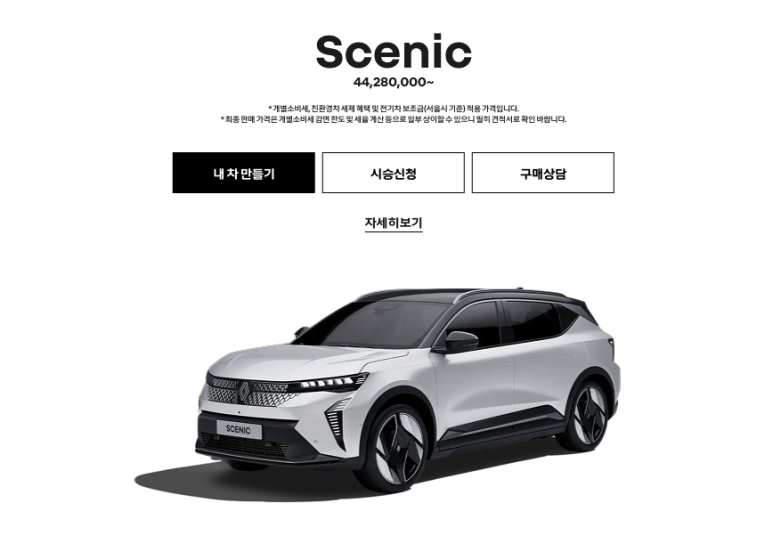 4. 순수 전기차: 세닉 E-Tech (초저리 할부)