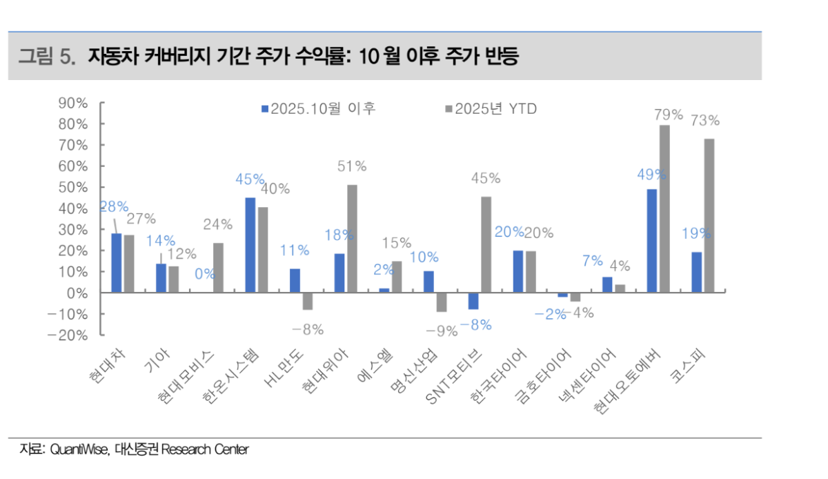그는 이어 “올해 4분기는 관세 지속과 계절적 비용 확대 요인이 남아 있으나 2026년부터는 팰리세이드·투싼·아반떼·그랜저 등 신차 라인업과 전기차 신모델 출시로 실적 개선이 본격화될 것”이라며 “현재의 우려는 결국 내년 이후 반등의 기저가 될 것”이라고 말했다.