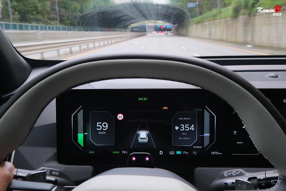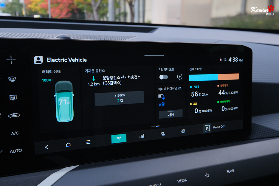 그런 ECO 세팅때문에 배터리 효율이 더 좋았는지도 모르겠구요, 이중적합 유리를 적용하면서 방음 부분으로도 제법 신경을 쓰고 있고 안전 관련해서도 현대차그룹 최초로 적용한 가속 제한보조 기능이 적용되는 등