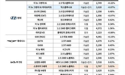 ● 엔카닷컴, 2025년 11월 중고차 시세 공개… 국산차 평균 0.56% 상승, 수입차 평균 1.21% 하락 ● 디젤 ...