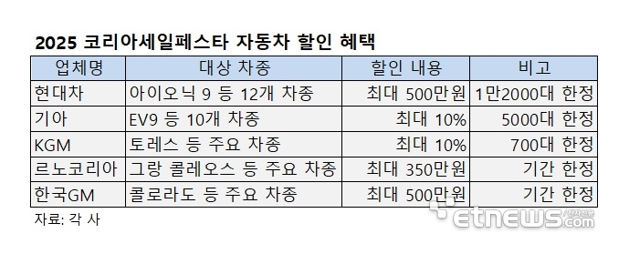 연말 성수기에 진입한 완성차가 국내 최대 쇼핑 축제 '2025 코리아세일페스타'에 동참. 차량 가격의 20%를 할인하는 등 올해 최고 수준의 혜택을 내놨다.