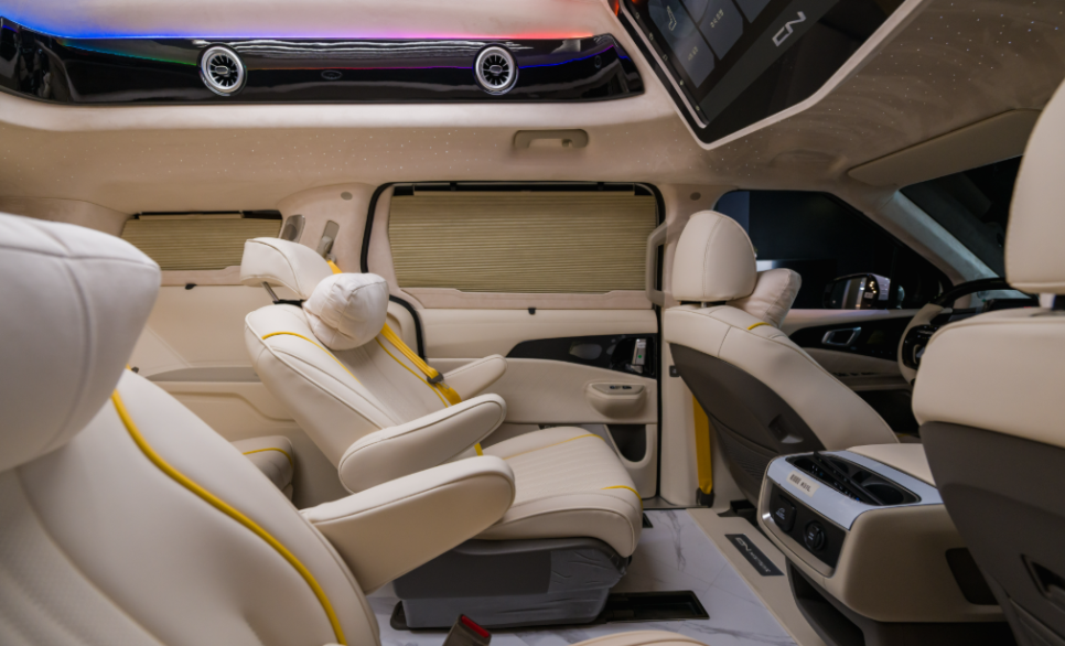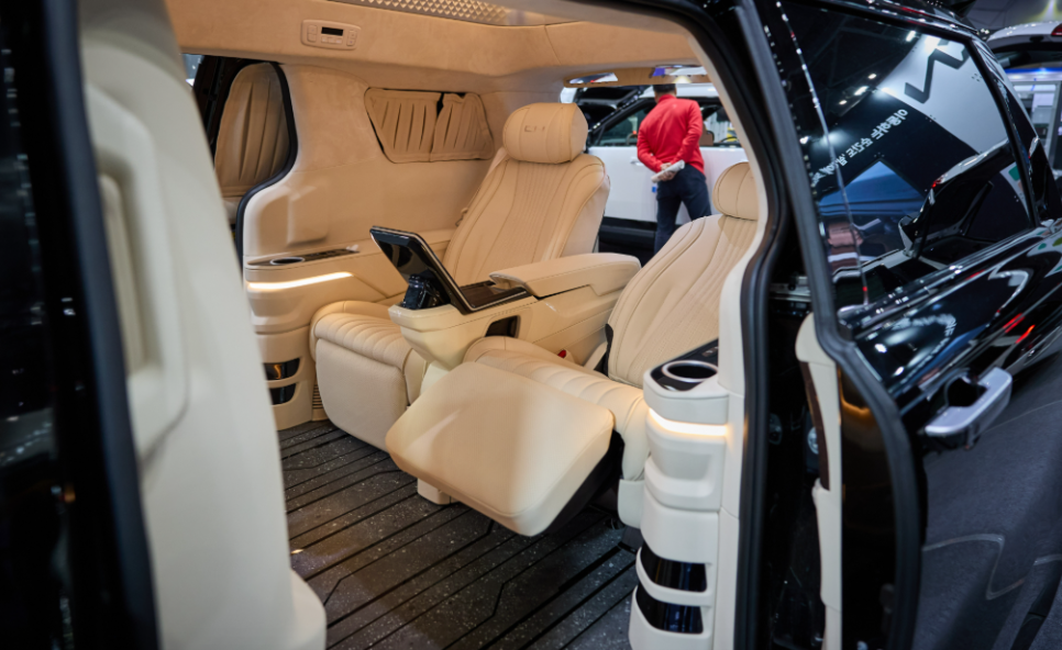 개인적으로 마음에 드는 부분이 바로 1열 편의성까지 배려한 실내 구성이 마음에 드는데요. CN모터스 카니발 하이리무진은 1열에도 나파 가죽이 적용된 리무진 시트가 기본으로 들어가게 됩니다 여기에 더해 푹신한 프리미엄 소재의 콘솔 트리밍, 전 좌석에 허리 쿠션 및 헤드 쿠션이 포함되어 있습니다. 기본 사양 외 스페셜 우드 플로어, 스타라이트와 같은 추가 옵션을 통해 차별화된 고급스러움도 경험해 볼 수도 있죠.