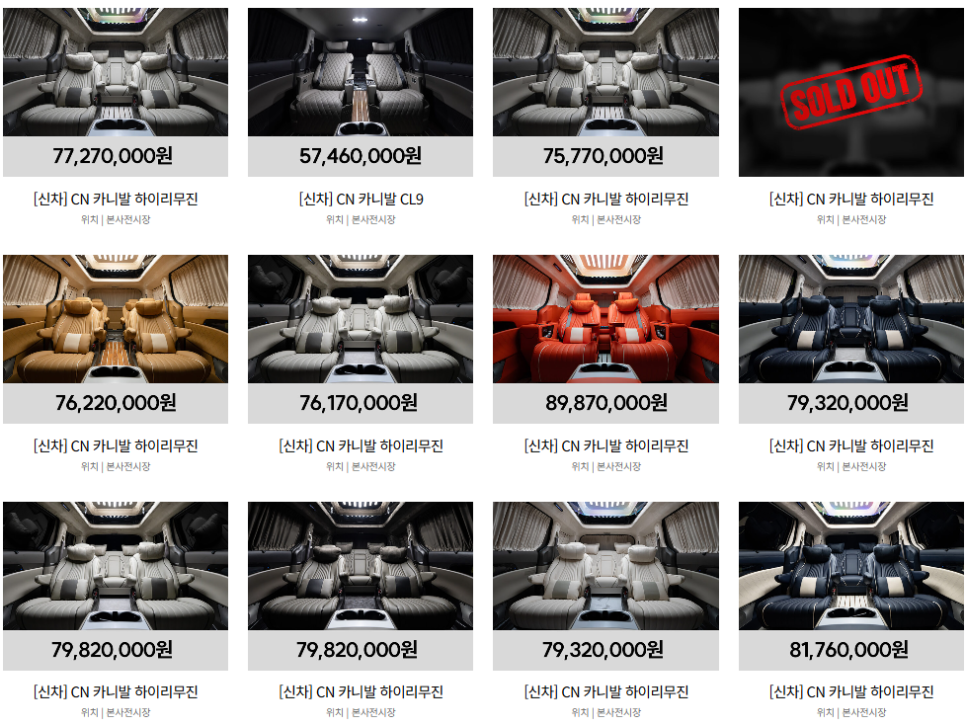CN모터스 카니발 하이리무진 다양한 패키지 구성