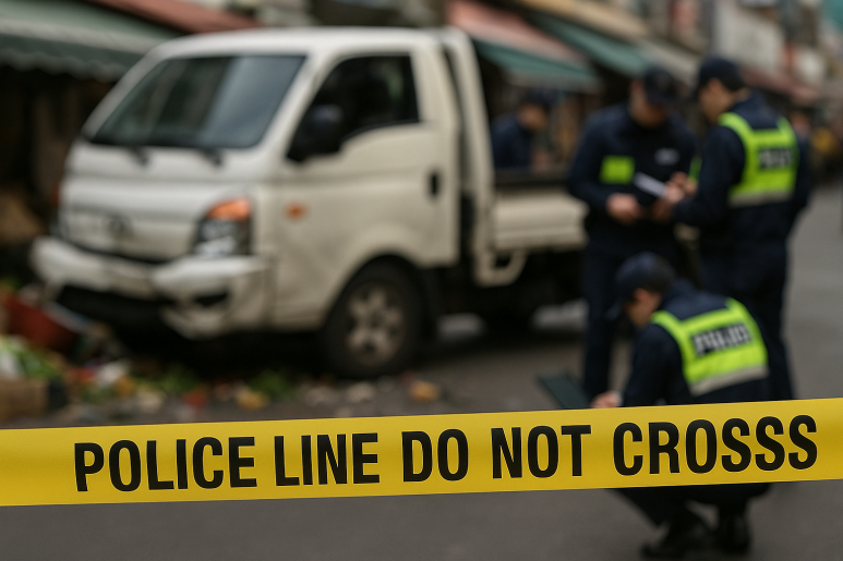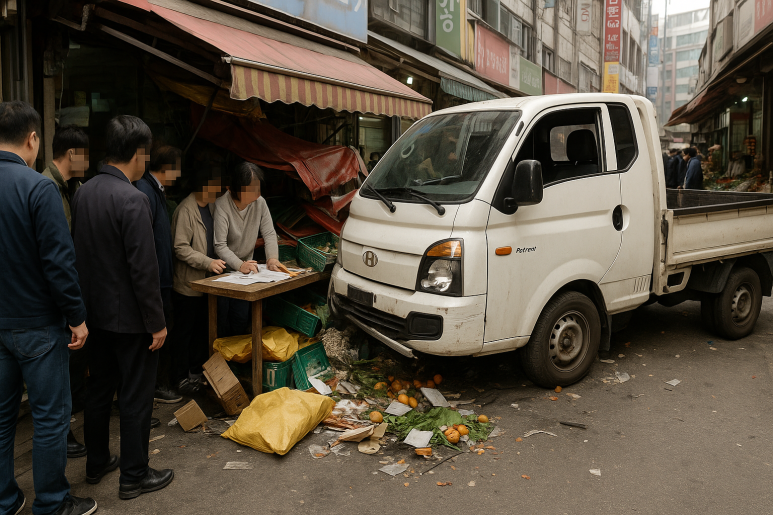 1톤 트럭 한 대가 시장 안으로 그대로 돌진했다는 뉴스였죠.