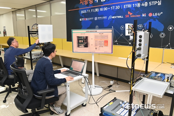 한국전자통신연구원(ETRI)이 17일 6G 시대의 핵심 기반 기술인 지능형 무선 액세스기술(AI-RAN) 개발을 완료했다고 밝혔다. 인공지능(AI)이 통신망을 스스로 제어, 최적화할 수 있는 'AI-Native'는 5G보다 최대 10배 높은 전송 효율을 달성할 것으로 기대된다. ETRI 연구진이 지능형 무선 액세스 기술을 시연하고 있다. 〈ETRI 제공〉 김동욱 기자 gphoto@etnews.comK-조선 호황에 온실가스 배출 증가…감축역량 확보 총력LG전자, 온라인몰서 리빙·인테리어 서비스도 판매11번가, 연말 맞이 인기 e쿠폰 특가 판매컬리, 연말 시즌 맞이 '홀리데이 마켓' 진행대웅제약, K-AI 국책과제 연구기관 선정…“범용 임상 AI 플랫폼 구축”