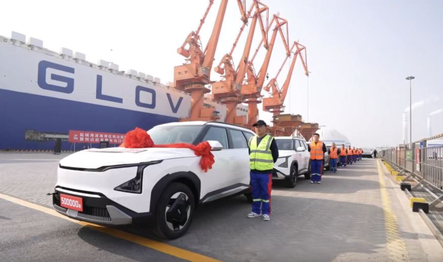 17일 옌청시 관보에 따르면 기아기차유한공사(起亚汽车有限公司, 이하 기아기차)는 지난 15일(현지시간) 옌청항에서 차량 2000대를 현대글로비스의 '글로비스 선샤인'호에 선적하며 누적 수출 50만 대를 달성했다. 선적 차량에는 쏘나타, 세투스, 스포티지 투어, EV5 등 내연기관과 전기차 모델이 포함되며, 한국 부산항을 거쳐 전 세계로 판매될 예정이다.