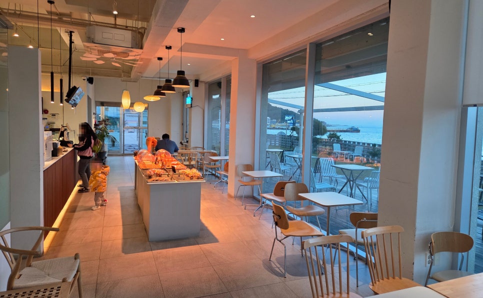 저희는 마늘빵이랑 카페라떼와 토마토 주스를 주문했습니다. 마늘빵도 7천 원 정도 한 것 같은데 양이 조금 아쉽긴 하지만 정말 맛있었어요 특히 겉바속촉 제대로네요 3살 딸이 잘 먹을 정도로 아이들도 좋아하는 디저트입니다. 커피 맛도 맛있고 늦게 가서 그런지 조용한 분위기도 좋고 바다 뷰도 보이고 전체적으로 만족스러웠네요. 저는 영덕을 좀 자주 가기 때문에 이 시간에 3번은 여기 간 것 같네요 완전 추천!