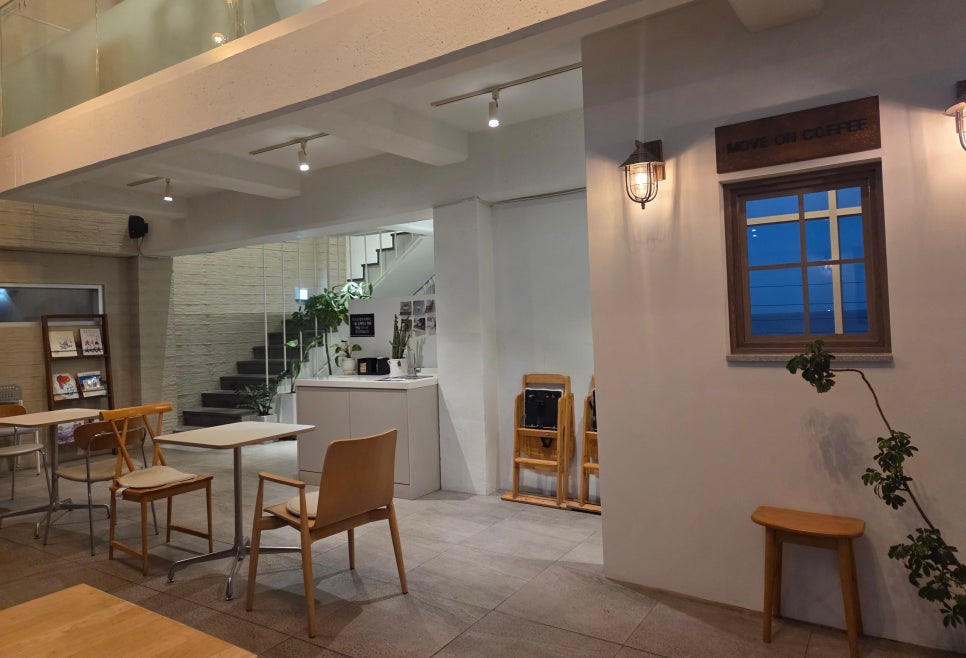 최근 영덕에 밤바다 볼 겸 드라이브 가면서 들렸던 영덕 카페 무브온 커피 카페입니다. 강구항 다리 건너고 5분~10분 정도 거리에 위치하고 있고 해변가 도로 옆에 위치해 있어 접근성이 좋습니다. 주차장도 엄청 여유롭지 않지만 어느 정도 갖추고 있습니다 근처에 공원해파랑, 영덕 해맞이 공원, 국립 청소년 해양 센터 다양한 볼거리도 있죠.