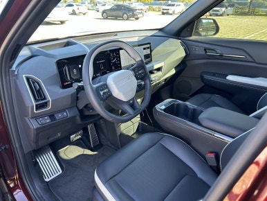 실용적인 수납 및 적재 공간: 2열 풀플랫 시트 기능이 적용되어 트렁크 공간과 연결하여 넓은 적재 공간을 만들 수 있습니다. 특히, 기본 트렁크 용량은 513리터(VDA 기준)이며, 2열 시트 폴딩 시 최대 965리터까지 늘어나 아웃도어 활동이나 캠핑 장비를 싣기에 충분합니다. 또한, 러기지(트렁크) 공간에는 실내 V2L 콘센트가 마련되어 있어 차박이나 야외 활동 시 전자기기 사용이 편리합니다.