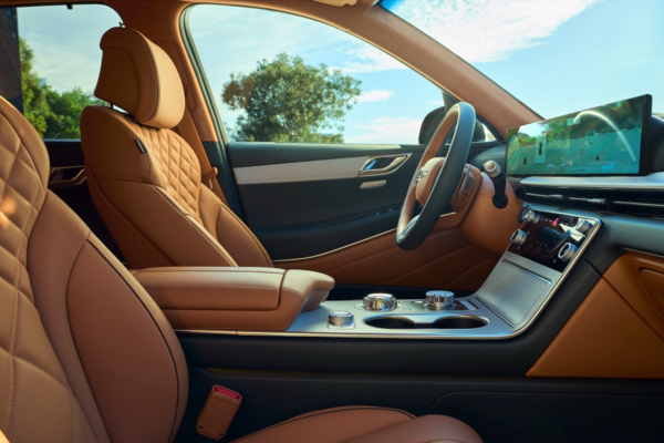 실내는 제네시스가 가장 자신 있어 하는 영역입니다. 특히 이번 GV80은 어스브라운·바잘트 톤을 중심으로 정제된 컬러 조합을 선보이며, 어두운 조명 환경에서 '1억원대 SUV다운 차분하고 품격 있는 분위기'를 완성했습니다.