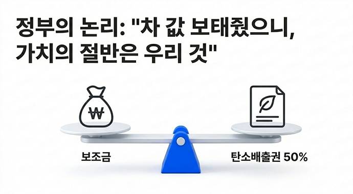 정부 논리는 간단하다. “국가 예산으로 차량 가격을 깎아줬으니, 그로 인해 발생하는 환경적 가치, 즉 탄소 감축분의 지분도 정부에게 있다.” 그래서 전기차 보조금을 받는 조건으로 탄소배출권의 일정 비율을 공공에 귀속시키는 조항을 붙인다.