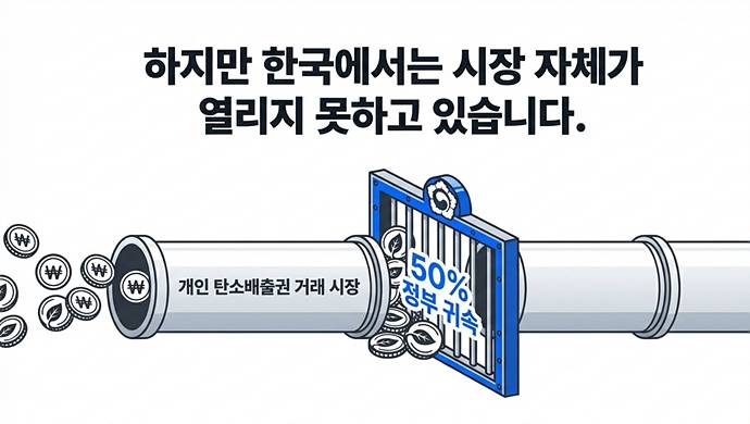 한국의 현 제도는 이와 다른 길을 택하고 있다. 전기차 보조금을 지급하는 대신, 탄소배출권의 일정 비율을 공공이 사전에 선점하고 묶어 두는 방식이다. 개인 간 탄소 거래(P2P)나 전기차 운전자의 크레딧을 모아 판매하는 플랫폼 비즈니스는 출발선에서부터 제약을 안게 된다.