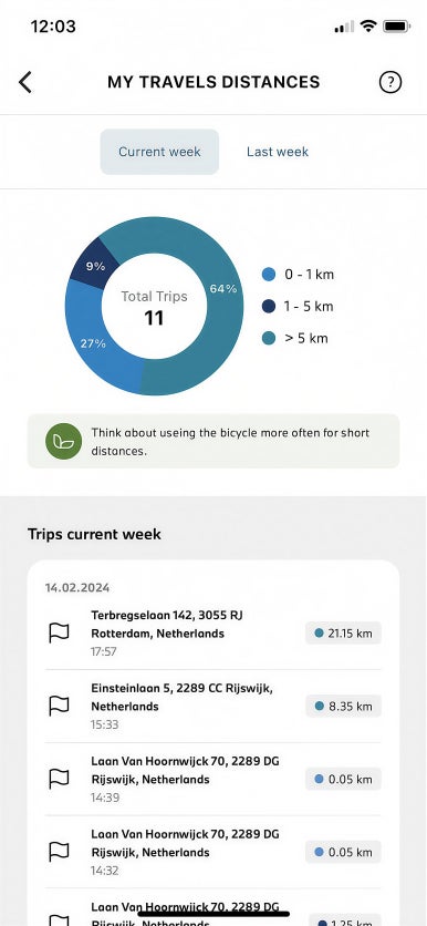 앱을 적극적으로 사용한 사람들은 그렇지 않은 사람들보다 일주일에 평균 1번 이상 차를 덜 탔습니다. 특히 5km 이내의 짧은 거리는 차 대신 다른 이동 수단을 선택하는 비율이 눈에 띄게 늘었죠.