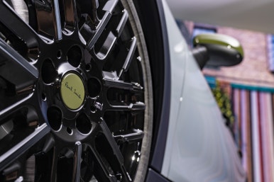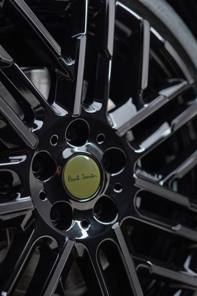 여기에 폴 스미스의 고향인 노팅엄을 상징하는 노팅엄 그린 컬러가 포인트로 들어갑니다. 사이드미러와 전면 그릴, 그리고 휠 캡에 은은하게 들어간 초록색이 차량의 전체적인 인상을 차분하면서도 고급스럽게 만들어줍니다. 과하지 않게 툭 던져놓은 듯한 멋스러움, 이게 바로 영국식 위트가 아닐까 싶습니다.