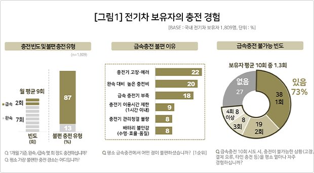 ● 급속충전 경험자 73%, 최근 10회 중 1회 이상 ‘충전 실패’