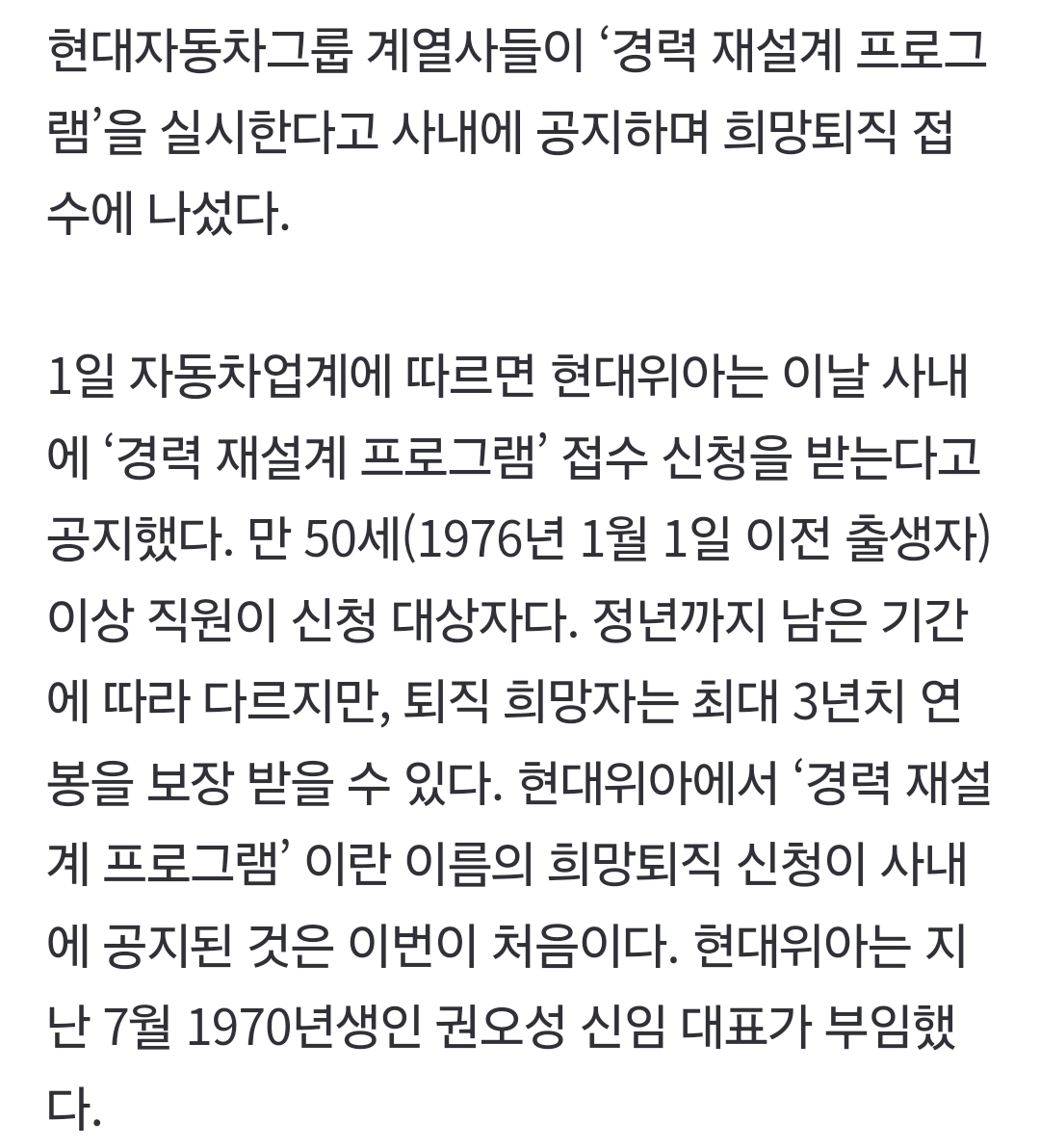 [단독] 현대차그룹 계열사 '희망퇴직' 돌입…경력 재설계 프로그램 공지 현대자동차그룹 계열사들이 ‘경력 재설계 프로그램’을 실시한다고 사내에 공지하며 희망퇴직 접수에 나섰다. 1일 자동차업계에 따르면 현대위아는 이날 사내에 ‘경력 재설계 프로그램’ 접 n.news.naver.com 서브 서사가 은근히 맛도리인 사극 드라마손흥민이 케인 나가고도 프리킥을 못 찬 이유아이돌 공항사진이 만들어지는 과정을 취재한 기자.jpg정품 갈통더웨이.gif은행 가서 500억 입금한 노인