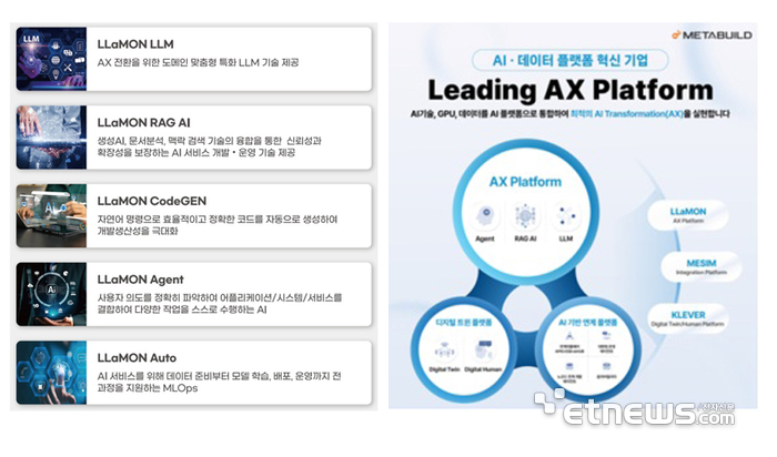 기존 연계·데이터 플랫폼 역량에 더해. 자체 'LLaMON LLM'을 기반으로 'RAG AI' '에이전트 빌더' '코드자동 생성' 'MLOps 플랫폼' 등 플스택 AI 솔루션을 출시해 'AX 플랫폼' 시장을 선도하고 있다.