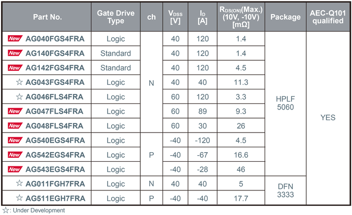 로옴, 차량용 40V·60V MOSFET에 소형·고신뢰성 신규 패키지 제품 추가