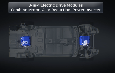 이 플랫폼은 두 가지 방식으로 구동되는데, 순수 전기차 모드(BEV)에서는 최대 500마일, 약 800km를 달릴 수 있습니다. 승용차도 아니고 그 무거운 트럭이 800km를 간다는 것 자체가 엄청난 기술력입니다.