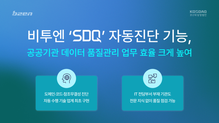 박순혁 비투엔 솔루션실장은 “SDQ는 공공기관의 실무 현장에서 꾸준히 활용되며 신뢰성을 인정받아왔다”며 “이번 자동진단 기능 업데이트가 고객사의 실제 업무 효율 향상으로 이어진 만큼 앞으로도 공공기관이 보다 효과적인 데이터 품질관리 체계를 구축할 수 있도록 기술 혁신을 지속하겠다”고 말했다.