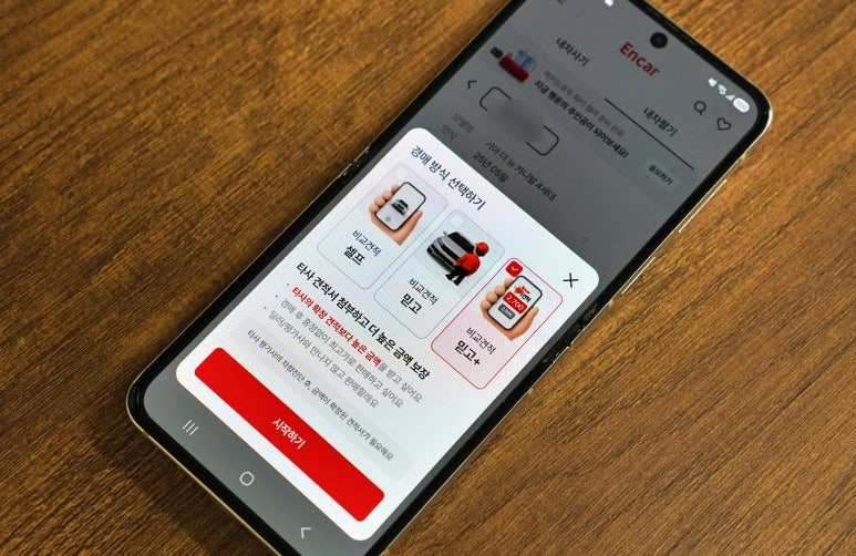 차량 정보를 입력하면 3가지 경매 방식 중 하나를 고를 수 있습니다.