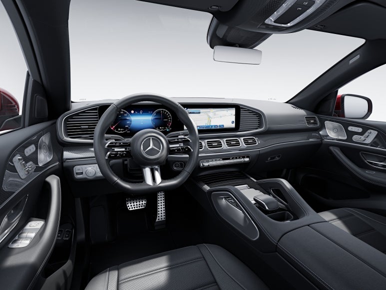 실내 공간은 메르세데스-마이바흐 GLS의 인테리어 요소를 계승하여 럭셔리함을 극대화했다. 특히 중앙 및 측면 송풍구를 크롬으로 마감하여 깔끔하면서도 고급스러운 분위기를 연출했으며, 고객 취향에 따라 ‘마누팍투어 플로잉 라인 피아노 라커’ 트림을 옵션으로 선택할 수 있다. 스포티한 감성이 돋보이는 GLE 쿠페의 경우, AMG 라인 인테리어가 기본 적용되어 블랙, 화이트/블랙, 블랙/클래식 레드 등 감각적인 투톤 가죽 조합을 선택할 수 있다. 또한 최신형 다기능 스포츠 스티어링 휠은 심미적인 만족감뿐만 아니라 조작의 편의성까지 더해준다.