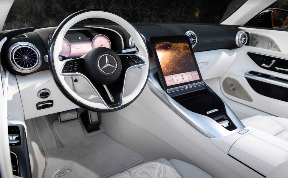2026 메르세데스 벤츠 마이바흐 SL 어떤 주행에서도 좌우 흔들림을 효과적으로 잡아주는 액티브 라이드 컨트롤 서스펜션과 안정적인 코너링을 도와주는 최대 조향각 2.5도 리어 액슬 스티어링, 부드러운 변속을 경험할 수 있는 스피드시프트 MCT 9단 변속기 그리고 상황에 따라 전륜 차축을 최대 30mm 올릴 수 있는 프론트 액슬 리프트 시스템까지. 기본 사양이 매우 탄탄한 모델이죠,
